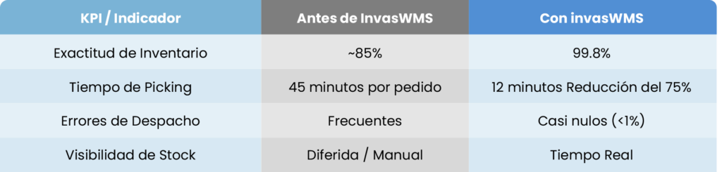 • Errores en el Picking: Entregas de códigos erróneos o cantidades inexactas, lo que generaba devoluciones y notas de crédito.